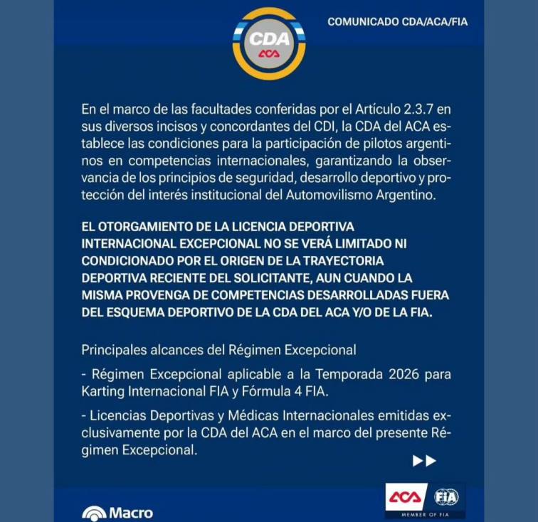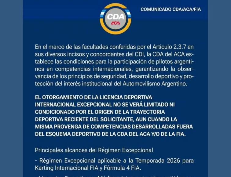 LA CDA DEL AUTOMÓVIL CLUB ARGENTINO, TOMÓ UNA MEDIDA AGUARDADA Y CON SIGNIFICACIÓN POLÍTICA.