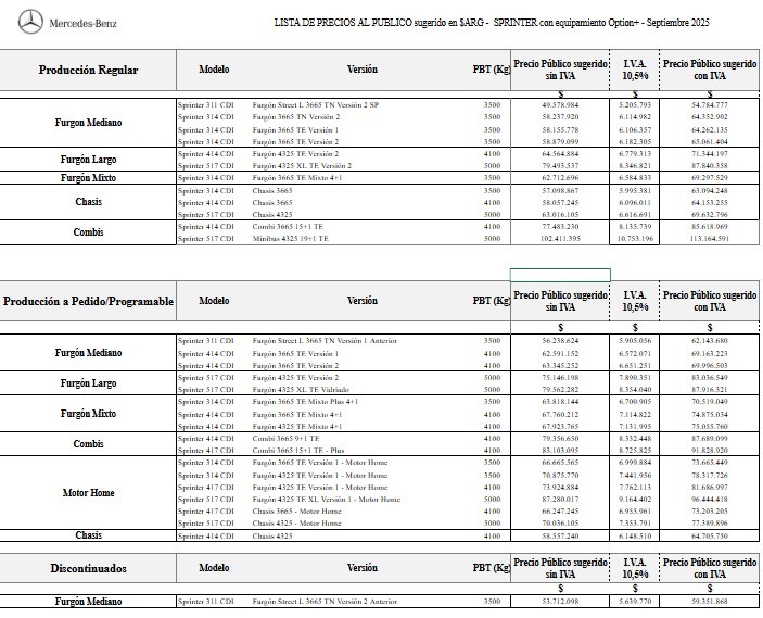En junio pasado, Prestige Auto asumió la representación, importación, distribución, producción y exportación de automóviles y vans Mercedes-Benz en Argentina. Su política de precios estables, aplicada tanto a modelos nacionales como importados, responde a construir una visión sostenida en el tiempo, enfocada en fortalecer la relación con sus clientes. Además, la Sprinter -fabricada en la planta de Virrey del Pino- superó nuevamente el 50% de participación en el segmento de utilitarios durante agosto, ratificando su liderazgo.