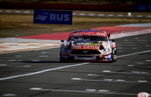 LA IMAGEN DE AGUSTÍN CANAPINO, AL LADO DE SU CHEVROLET CAMARO, ALISTADO POR EL CANNING MOTORSPORT, LUCIENDO LOS CONOCIDOS COLORES DE LA PETROLERA AXION.