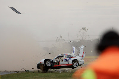 El trompo de Norberto Fontana, tras una maniobra apretada por adentro de Diego Aventin en la última curva, llenó de humo al lugar. Furlan quedó ciego y no pudo evitar embestir en la parte trasera al auto de Fontana que le sirvió de rampa de lanzamiento. Se clavó de punta y empezó a volcar sobre el sector externo, en el pasto, zona amplia como todas las del Mouras que van a favor de la seguridad. Dicen que dio siete tumbos, tremendos. El impresionante golpe queda patentizado en las imagenes captadas por Bernabé Bosco, reportero gráfico de la categoría y de la revista Corsa y que VisionAuto te muestra ahora.