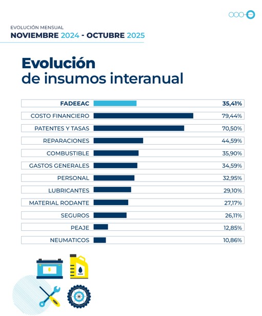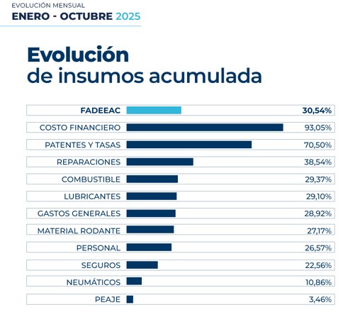 Luego de un primer semestre con variaciones más moderadas (14% acumulado), los costos para mover un camión en la Argentina mostraron a partir del séptimo mes una tendencia de aceleración combinada, acumulando una suba de 30,5% en lo que va del año (enero-octubre 2025), mientras que la variación interanual asciende a 35,4%.