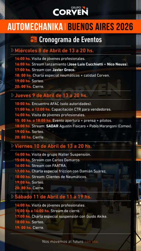 Conferencias especiales: Tres de las entidades más representativas del sector, participan con charlas abiertas con debates sobre aspectos apuntados a redefinir al sector. La Federación Argentina de Asociaciones de Talleres de Reparación de Automotores y Afines (FAATRA), la Cámara de Comerciantes en Repuestos del Automotor (CCRA) y Grupo Proa.