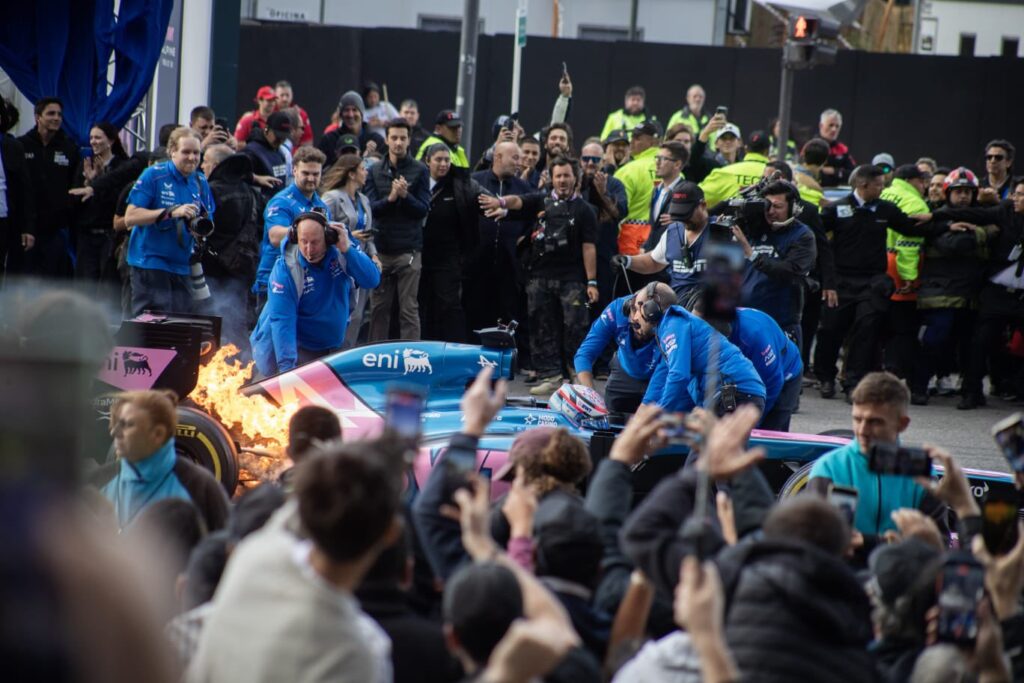 El embrague del Lotus, en llamas. Foto: Roberto Decurnex.