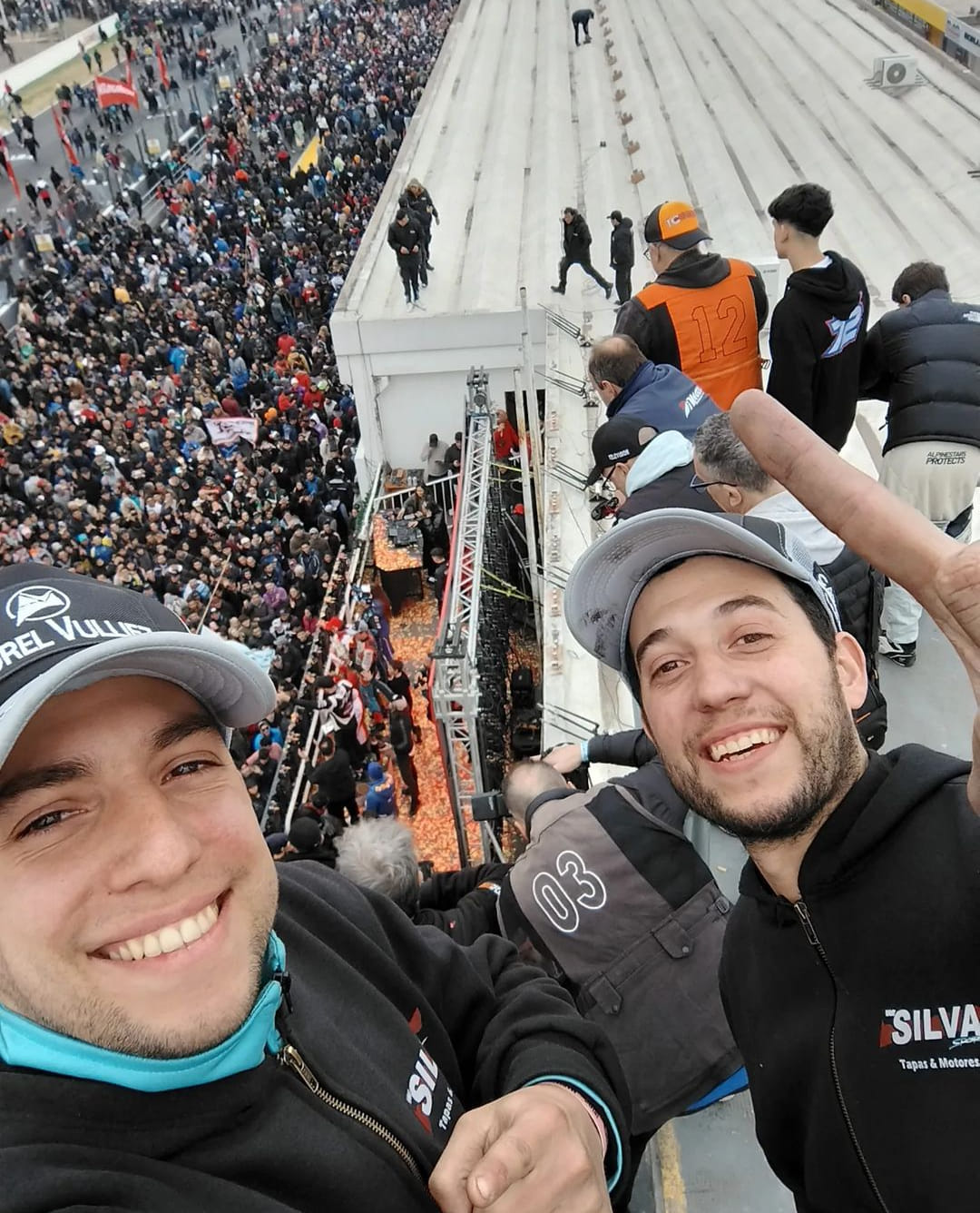 Sus hijos Marcelo y Mariano, celebrando una victoria como motoristas en Buenos Aires. Los pibes bien encaminados en el alistamiento de motores para TC, TC Pista y los TC Mouras. Silva orgullos, los observa como trabajan y desde ya, si hace falta los asesora.