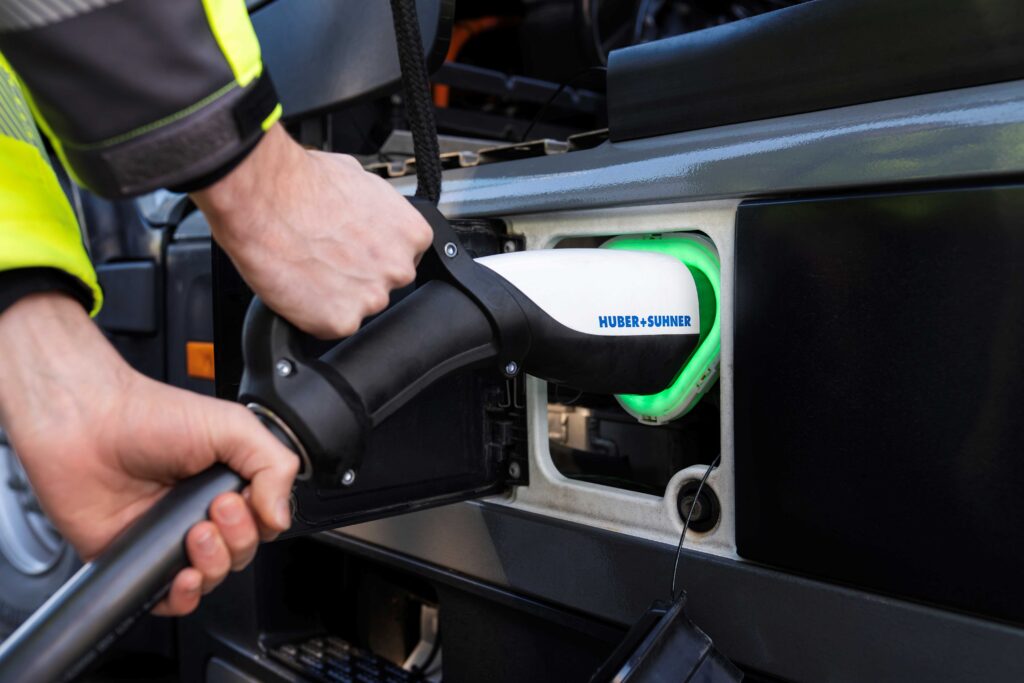 Con capacidades de carga de hasta 1000 kW, las baterías de los camiones eléctricos se pueden cargar más rápidamente que con la actual y habitual tecnología CCS, por ejemplo. Con MCS, eActros 600 solo tarda unos 30 minutos, en cargar las baterías del 20% al 80%.