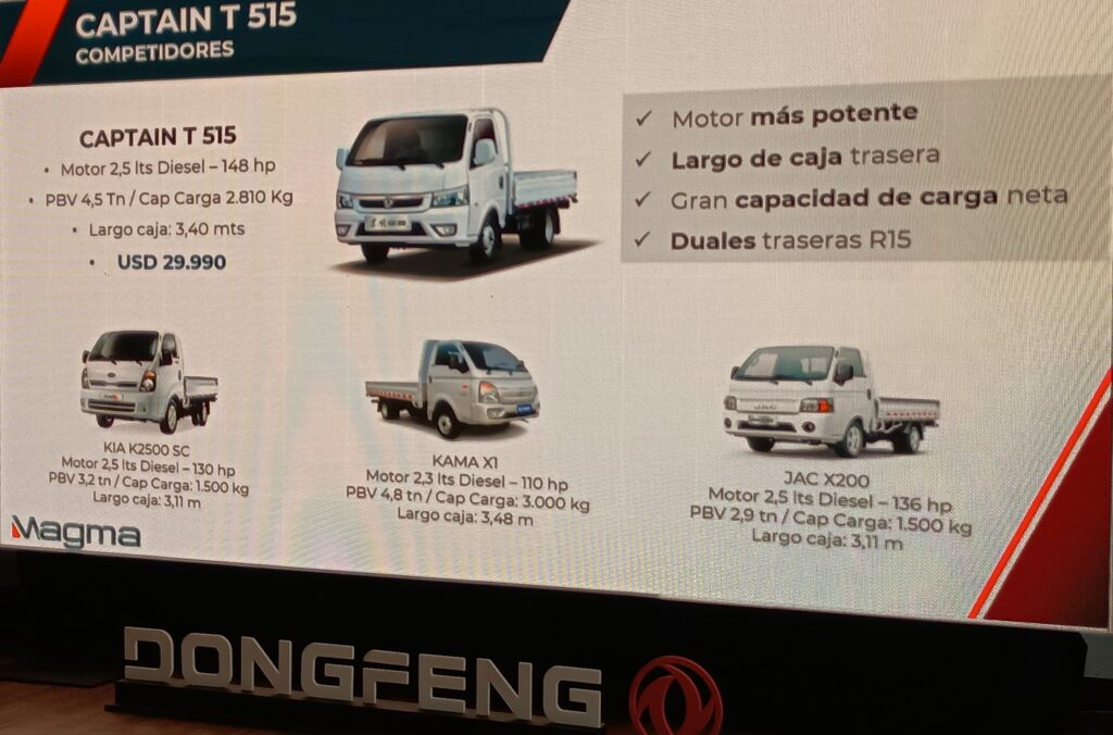 Ahora, un con el flamante exponente, Captain T 515 se espera alcanzar la misma performance, por unas características que le otorgan ventajas significativas con respecto a sus rivales de origen asiático (KIA 2500, KAMA X1 y JAC X200). Mayor potencia, capacidad y tamaño de la caja de carga y precio 29.990 dólares.