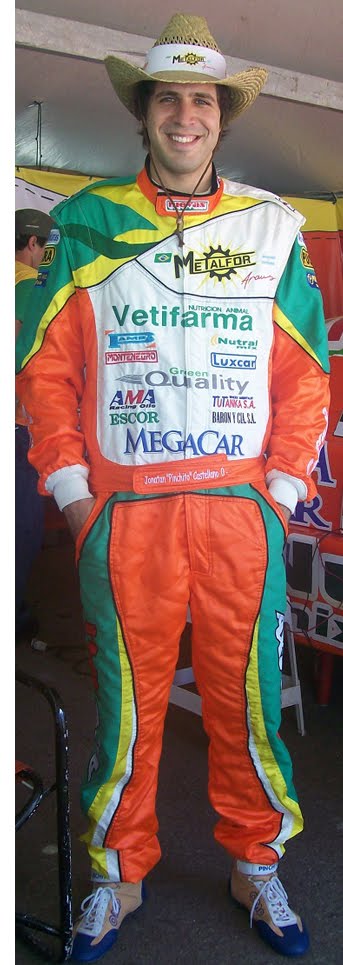 Parecía Piño Fijo el Pinchito Castellano enfundado en su buzo multicolor. “Sólo le falta decir, chuchu ua!, chuchu ua!” repetían en los boxes de Mar de Ajó uno de esos chistosos siempre atentos a este tipo de comparaciones. No le faltaba razón, viéndolo al hijo del Picho, con el generoso antiflama en cuya superficie y de manera poco armónica se mezclaban colores tan pocos combinables como el naranja tradicional de los Castellano con el verde, blanco y amarillo de Metalfor, uno de los nuevos patrocinantes del equipo que también incluye a Tomás Urretavizcaya. Encima, con su 1,95 m de altura y el sombrero texano, Jonatan no es alguien que pueda pasar inadvertido.