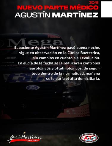 El Gurisito marchaba décimo, lejos de la punta, encerrado en un disputado pelotón y con su padre el Gurí, siguiéndolo desde el box. Nadie imaginó que la carrera de Agustín iba a culminar de esa manera. Si bien con los dolores de rigor, y mientras auxiliares y personal médico, trabajaron con rigor para extraerlo, Agustín se encargó con sus pulgares en señal de «todo está bien», de dar las primeras señales para tranquilizar a todo el mundo.
