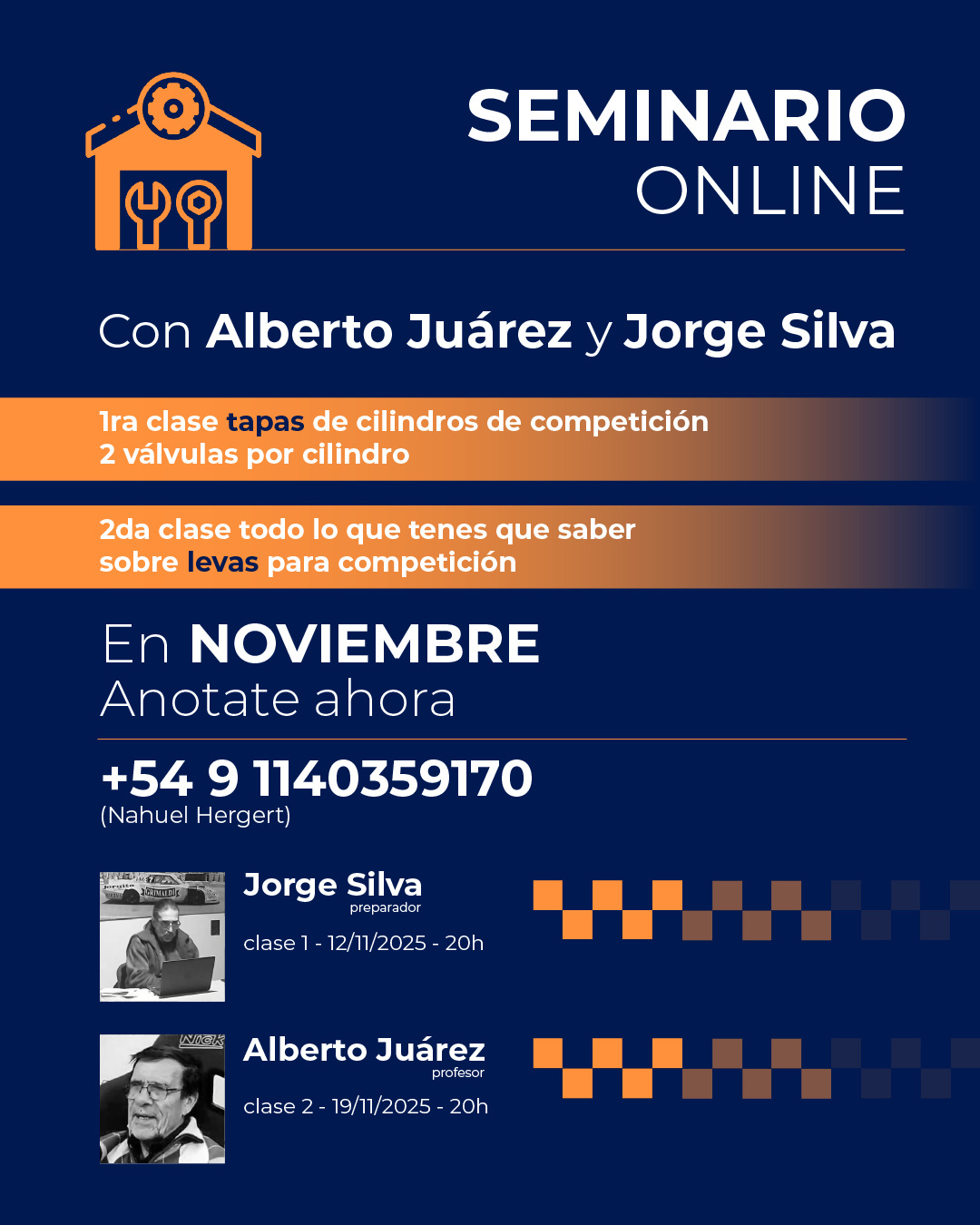 Ambos, entre sus coincidencias, se encuentran unidos por la misma pasión: los autos de carreras, los motores, la potencia, la velocidad. Silva se inclinó a una nueva faceta, la docencia. Así viene dictando cursos sobre prepación de tapas de cilindros, ya sea presenciales en varias ciudades del interior y en Capital y Gran Buenos Aires. Para avanzar coincidió con Juárez y resolvieron brindar charlas y cursos. Silva apuntados a tapas de cilindro y el profesor Juárez a árboles de levas.