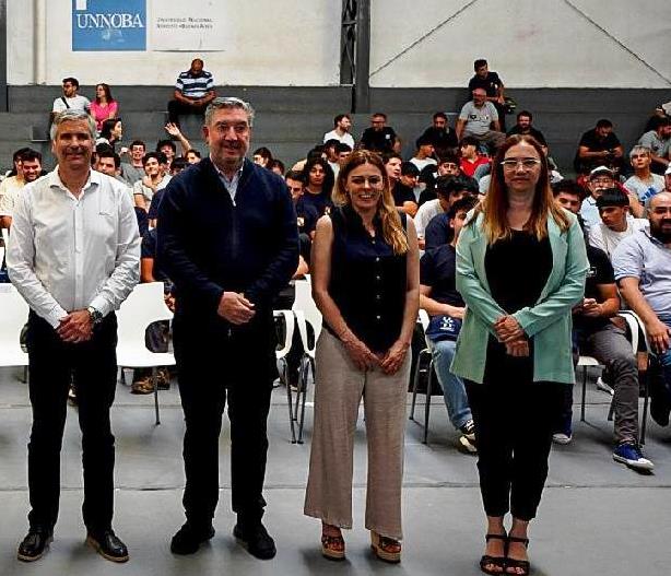 Gil Bicella, el rector de la UNNOBA, una autoridad educativa y Sarube, directora de la Escuela de Tecnología.