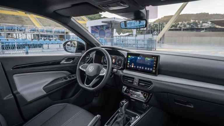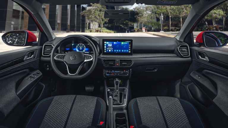 Agrega para mayor confort y seguridad, asistente de mantenimiento de carril, detector de punto ciego con asistente trasero de tráfico cruzado, freno autónomo de emergencia con detector de peatones y control de velocidad crucero adaptativo. También llave de presencia y arranque por botón “Keyless Entry & Go”, climatizador de una zona, indicador de presión de neumáticos, cargador inalámbrico en la consola central, apoyabrazos delantero y dos tomas USB tipo “C” en consola central más dos adicionales en la parte trasera, sensores de estacionamiento delantero y trasero con cámara de visión trasera, “Ambient Light”, tapizado en cuero sintético y alfombras de tela delanteras y traseras. A la vez,ma sensor de lluvia, espejo interior antideslumbrante, tablero digital “Active Info Display” de 10” y “VW Play” de 10” con “Mi VW Connect”.