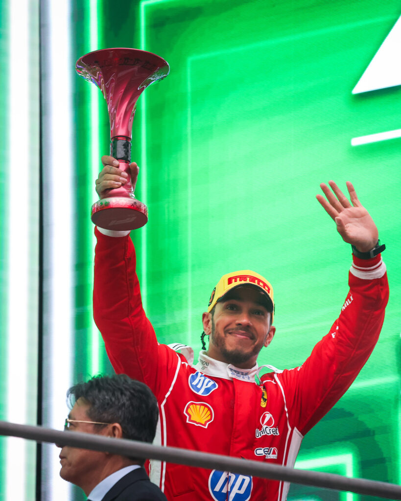 El buen momento de Hamilton quedó patente en China, donde luchó con estilo contra su compañero Charles Leclerc y finalmente logró su primer podio en un Gran Premio con Ferrari, justo un año después de su victoria, a la postre engañosa, en la carrera de Shanghái. Su alegría era evidente.