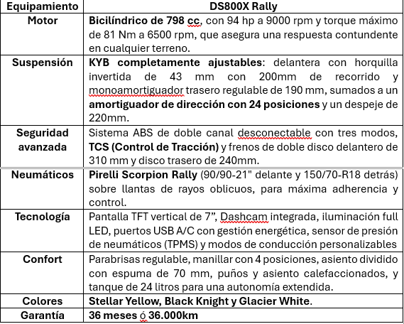 “La DS800X Rally es un modelo que reúne potencia, tecnología y confort. Especialmente diseñada para terrenos sin reglas, representa un paso clave en la consolidación de nuestra gama trail y en la propuesta de valor que ofrecemos a los usuarios más exigentes que buscan combinar su espíritu libre con potencia real”, destacó Mariano Vázquez Jefe de producto de Gilera, Hero y VOGE.