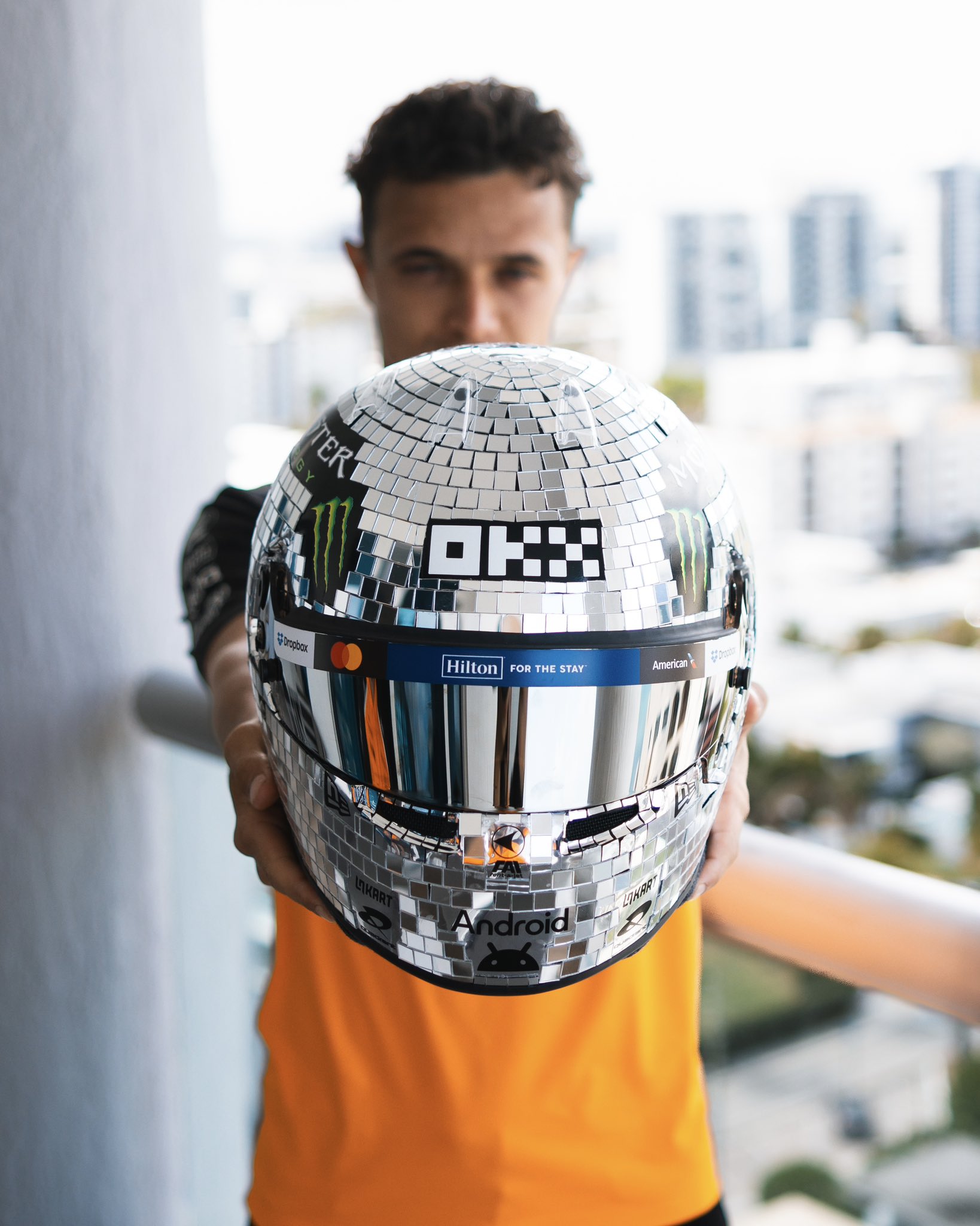 From a basketball to a disco ball, Lando’s special Miami lids continue ?#McLaren | #MiamiGP ?️ pic.twitter.com/ahhlTsd6JO