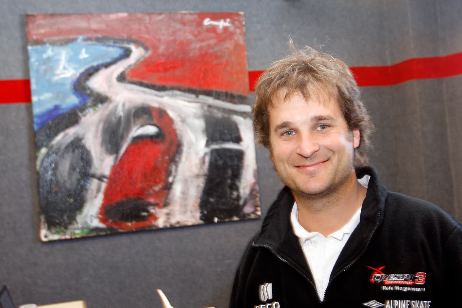¿Lo tenían a Luciano Crespi; sí, Lucianito, uno de los hijos del gran Tulio Crespi, precursor si los hay en la construcción de autos de carrera en La Argentina. Luciano escondía otra forma de disfrutar lo que hace; pintando. «Siempre me gustó la pintura, me acuerdo que cuando corría en Buenos Aires, siempre me hacía una escapada a algún museo para mirar arte; me encantaba. No sé, cuando no pintaba, mirar cuadros me llenaba de intriga y misterio, hasta que me largué a pintar», cuenta a VisiónAuto. «Pintar un cuadro para mí no fue nada sencillo, mas bien impresionante y cuando lo ves pintado es como conversaras con el; vos pintás y el responde», reseña Crespi hijo.