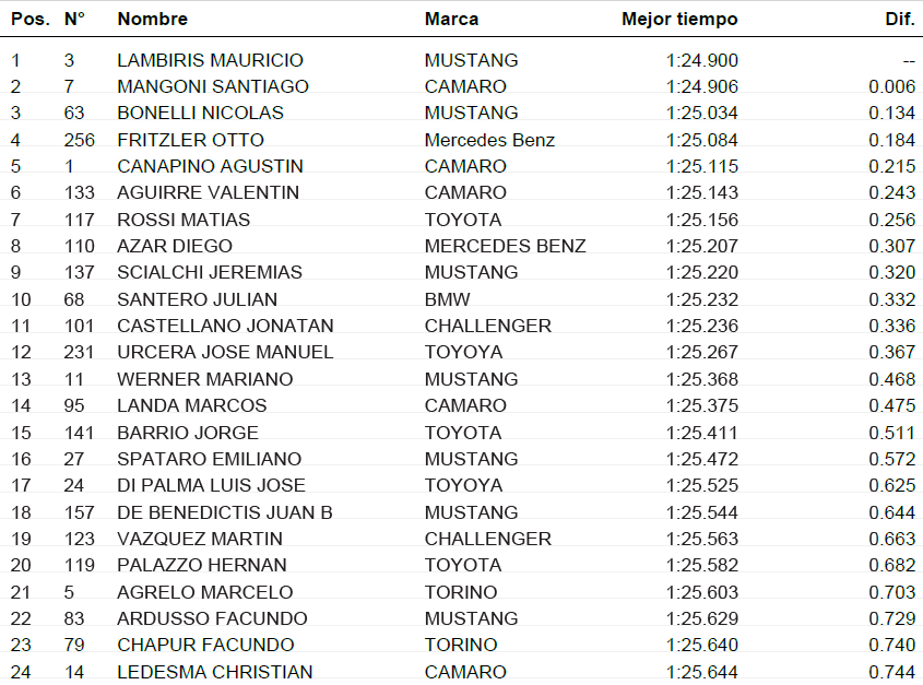El de Pilar consiguió su segunda pole en lo que va de la temporada. En su carrera 19 al comando este año del Ford Mustang, le robó el «uno» a Bautista Damiani, quien llegó a Entre Ríos como puntero de la etapa regular.