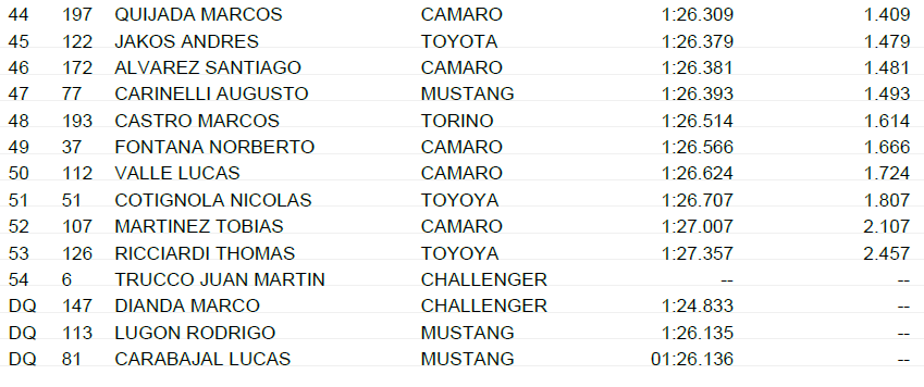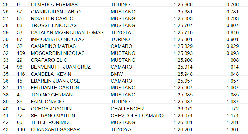 No pudieron bajarlo: Mauricio Lambiris (Ford Mustang), Santiago Mangoni,su Chevrolet Camaro en blanco), Otto Fritzler, un Mercedes por primera vez asomando; Agustín Canapino en un 2026 que no le presentó tan halagueño como 2025 arriba del Camaro, tampoco Mariano Werner resuelto a recuperar su otrora poderoso Mustang.