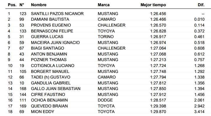 Respaldado por equipo de Mariano Werner; Santilli Pazos repitió el resultado que se había llevado el sábado en El Calafate. El de 9 de Julio replicó lo hecho en Neuquén, cuando fue escolta de Felipe Bernasconi. Tercero Eugenio Provens, podio en la última fecha y en el Quique Freile. De esa manera la división soporte dejó todo listo para las baterías domingueras que ordenaban la grilla para la final.