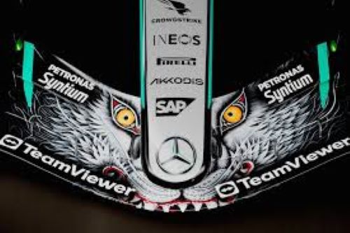 En el alerón delantero, los Mercedes lucían la imágen de un lobo con sus ojos amenazantes; como para seguir comiéndose ovejas.