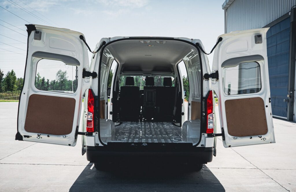Por otro lado, la versión Commuter, diseñada especialmente para el transporte de personas, cuenta con 13 asientos más el del conductor, y ofrece confort, seguridad y eficiencia para trasladar pasajeros.