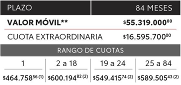 La propuesta de plan de ahorro es de 84 meses, bajo la modalidad 70/30: 70% en cuotas y 30% al momento de la adjudicación. Aunque todas las versiones de Hiace están disponibles para su elección al momento de la adjudicación, el modelo de referencia para el monto financiado por el plan es Hiace Furgón L2H2. El valor de la primera cuota en julio de 2025 es de $464,758.