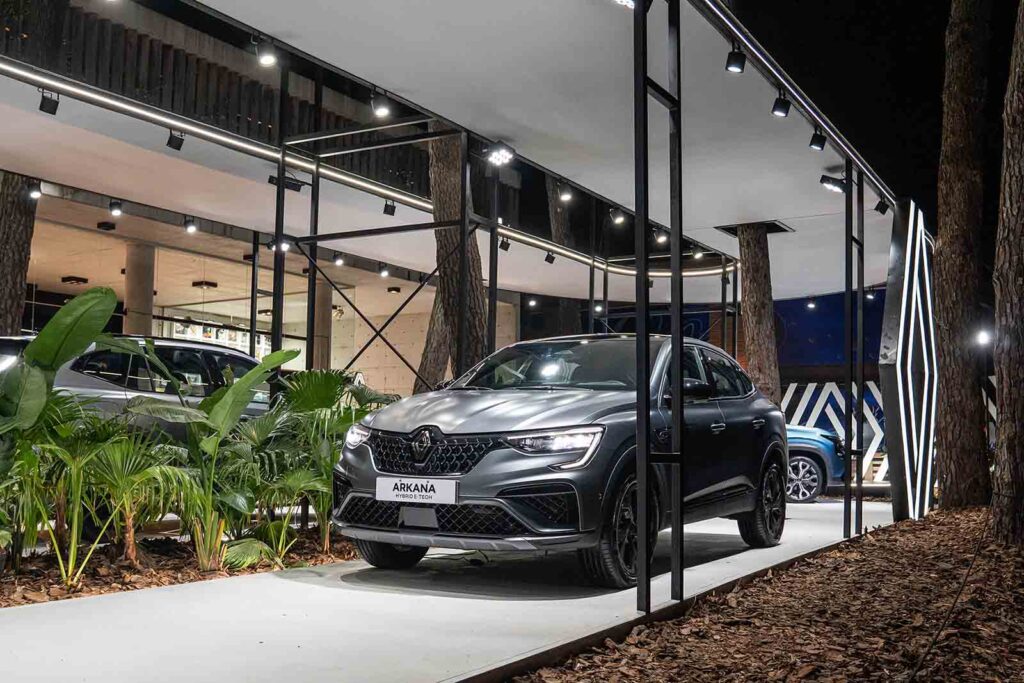 El stand de Renault en Cariló (abierto todos los días hasta el 26 de febrero, de 18 a 23 horas) se distingue por su estética inspirada en el concepto Le Défilé Renault, con una exhibición fluida y luminosa que pone en valor el diseño y el movimiento de los vehículos.