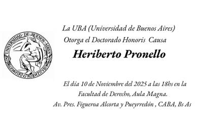 El constructor de autos de competición y vehículos especiales, el conocido Heriberto Pronello, fue distinguido por la Universidad de Buenos Aires, como Doctor Honoris Causa. El acto tuvo lugar en la Facultad de Derecho de la UBA.