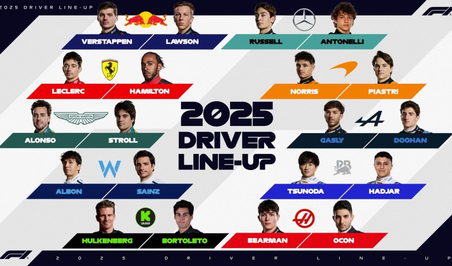 La butaca de Hamilton en Mercedes pasó a manos del chico italiano Andrea Kimi Antonelli. En tanto, a la controversial salida de Sergio Checo Pérez de Red Bull, con Liam Lawson, otro joven promisorio, le llegó el reemplazo. A su vez HAAS tomó dos nuevos pilotos: Oliver Bearman y Esteban Ocon, mientras que Sauber apostó por Nico Hülkenberg y Gabriel Bortoleto, campeón de Fórmula 2.