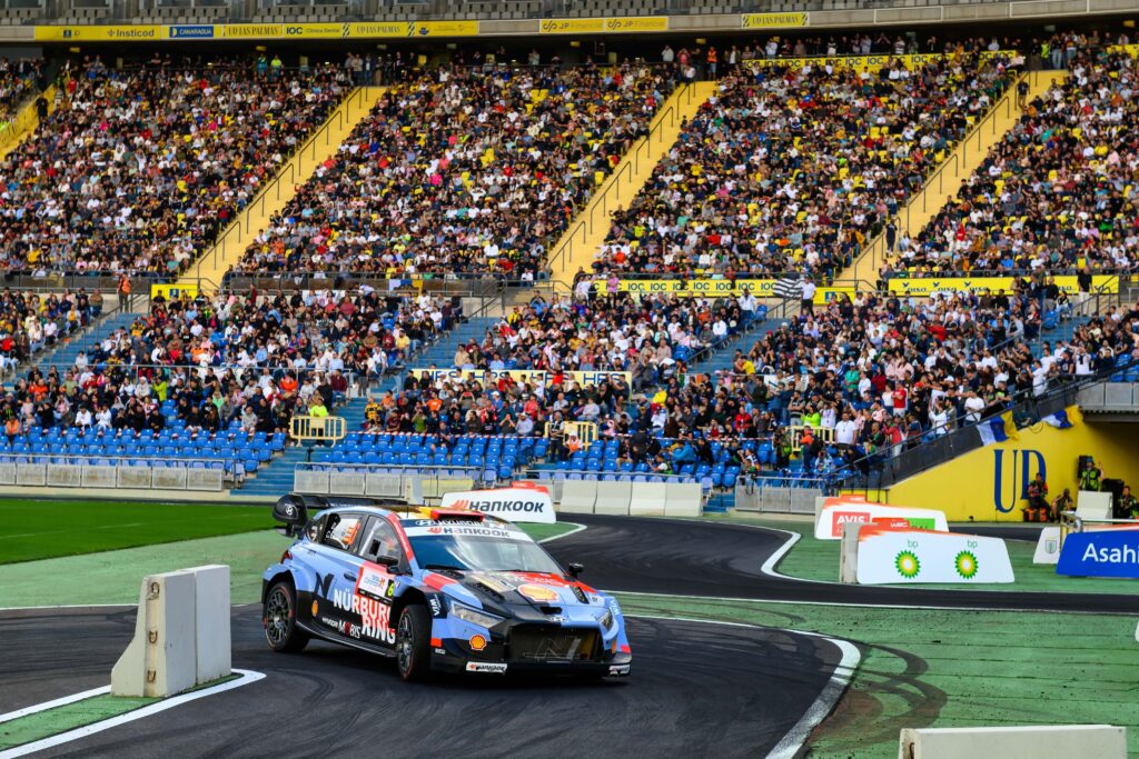 El rally de las Islas Canarias, la quinta fecha del Mundial, tuvo un arranque curioso: una prueba especial en asfalto dentro del estadio de la Unión Deportiva Las Palmas -dónde se destacaron tantos futbolistas argentinos, de Quique Wolff a Miguel Brindisi-, sin tocar la gramilla del campo de juego el césped. Faltaron los cartelitos nomás: prohibido pisar el césped.